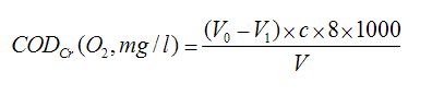 式中,c——硫酸亞鐵銨溶液濃度,mol/l; V0——滴定空白樣量,ml; V1——滴定水樣量,ml; V——水樣體積,5ml。